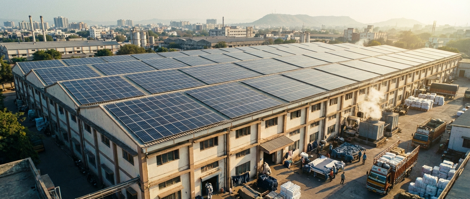 Replacing diesel generators with 50kW rooftop solar for a textile factory in Surat. This project aims to reduce carbon footprint by 60 tons annually and lower energy costs by 30%.